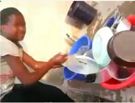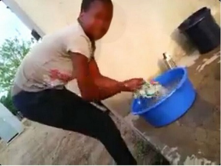 This is clearly a case of a disgruntled domestic worker who took her anger to new, disgusting levels. The House-help was actually caught on camera proudly wiping her vagina, legs, body sweat and ear wax with the same cloth she is cleaning her employers’ dishes with.